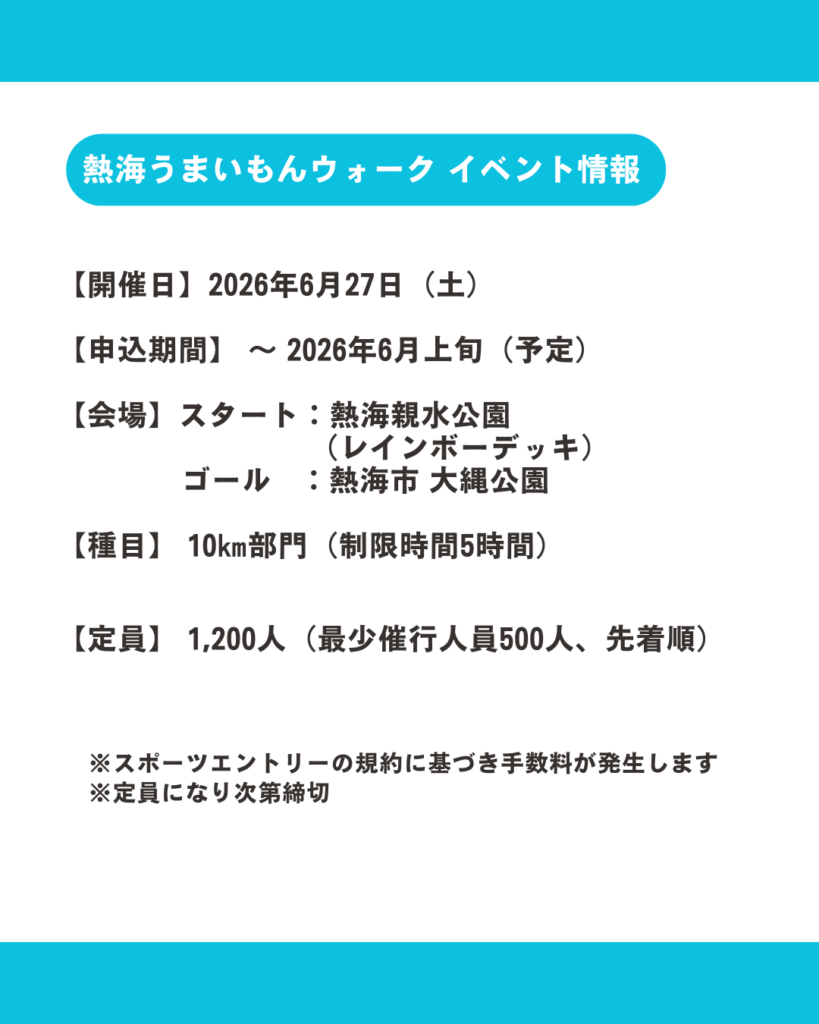2026年6月27日(土)、熱海の魅力を“歩いて・味わって・つながる”体験型イベント「熱海うまいもんウォーク10k」が開催されます。